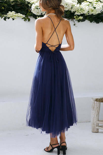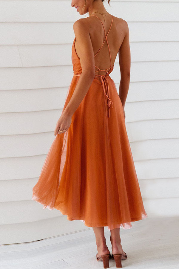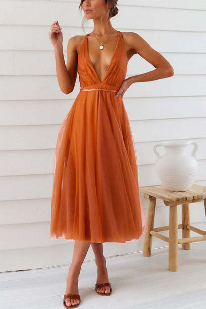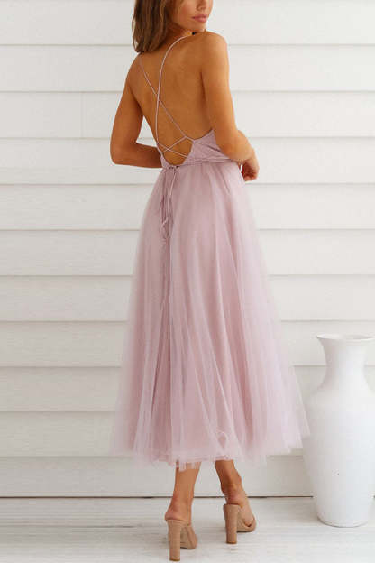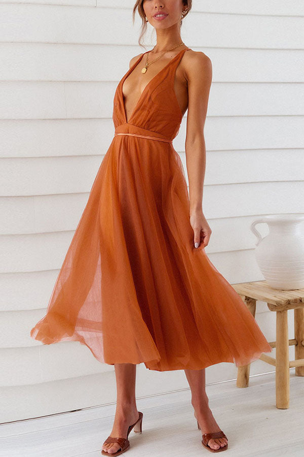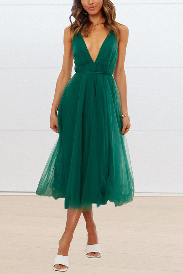 Feeling Romantic V Neck Tulle Midi Dress